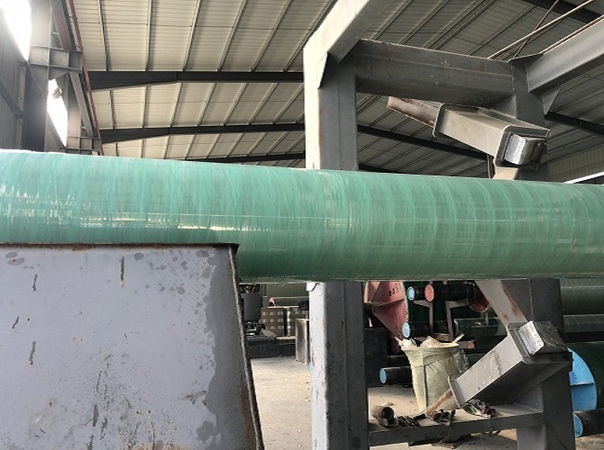 由計(jì)算機(jī)控制,在芯模上按規(guī)定的與纖維纏繞玻璃鋼管相同的工藝制造內(nèi)襯,凝膠后按設(shè)計(jì)好的線型和厚度纏繞結(jié)構(gòu)層,并將石英砂與樹脂混合的砂漿纏在結(jié)構(gòu)層中,纏繞外保護(hù)層。